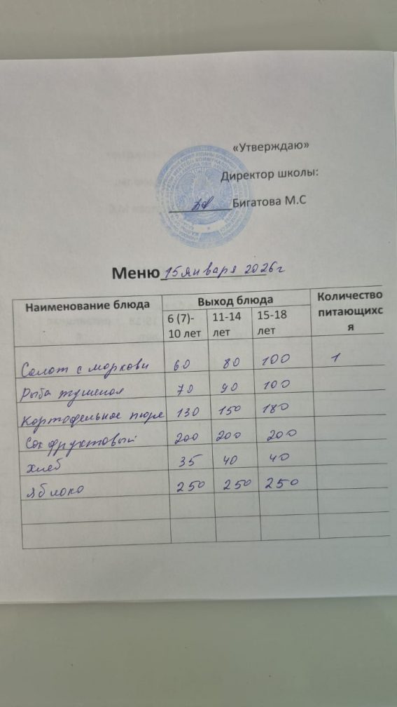 2025 жылғы 15 қаңтарға арналған ас мәзір