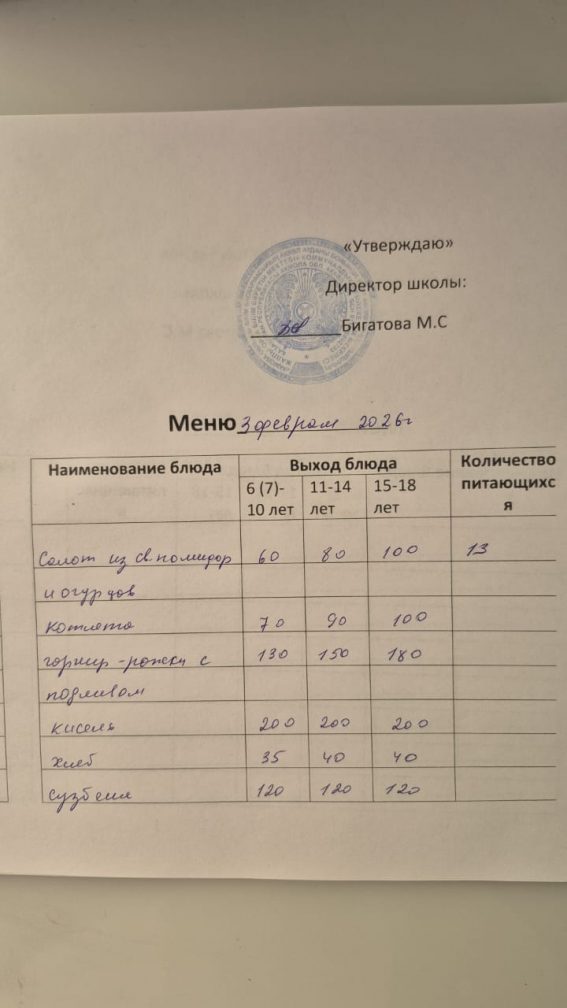 2026 жылдың 3 ақпанына арналған мәзір