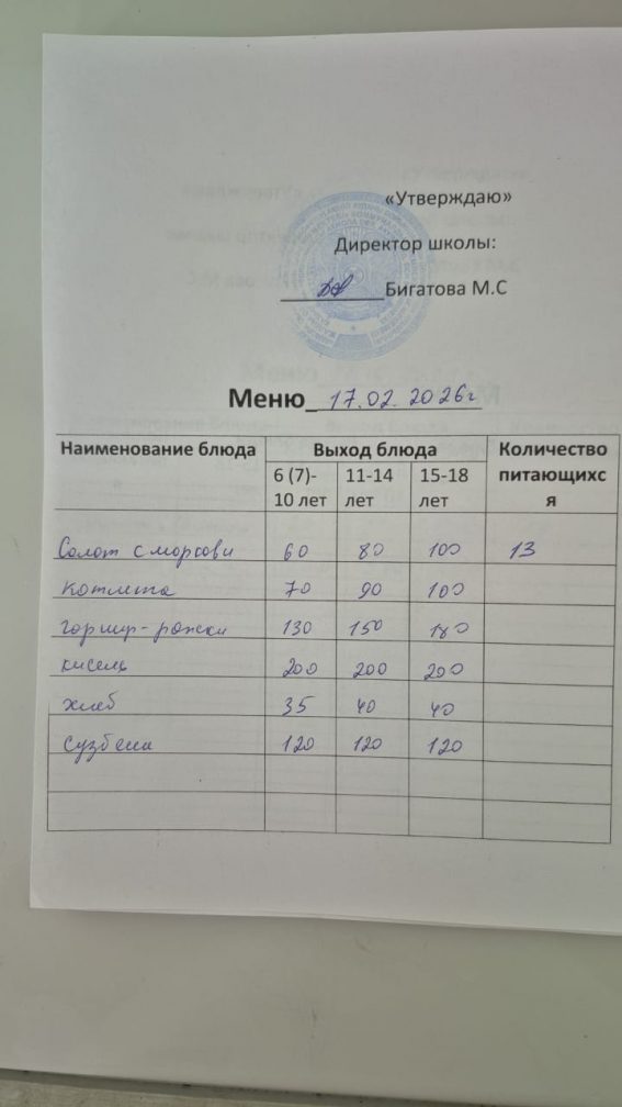 2026 жылғы 17 ақпандағы мәзір