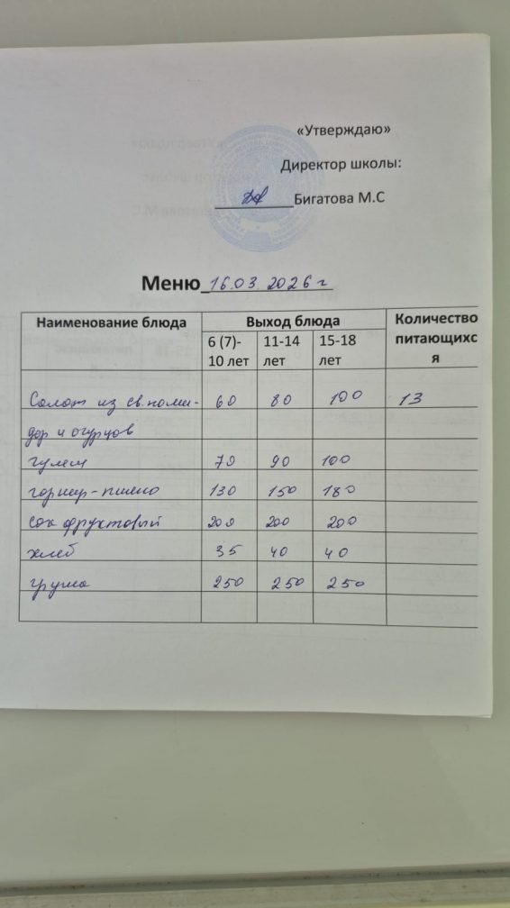 2026 жылғы 17 наурызға арналған мәзір