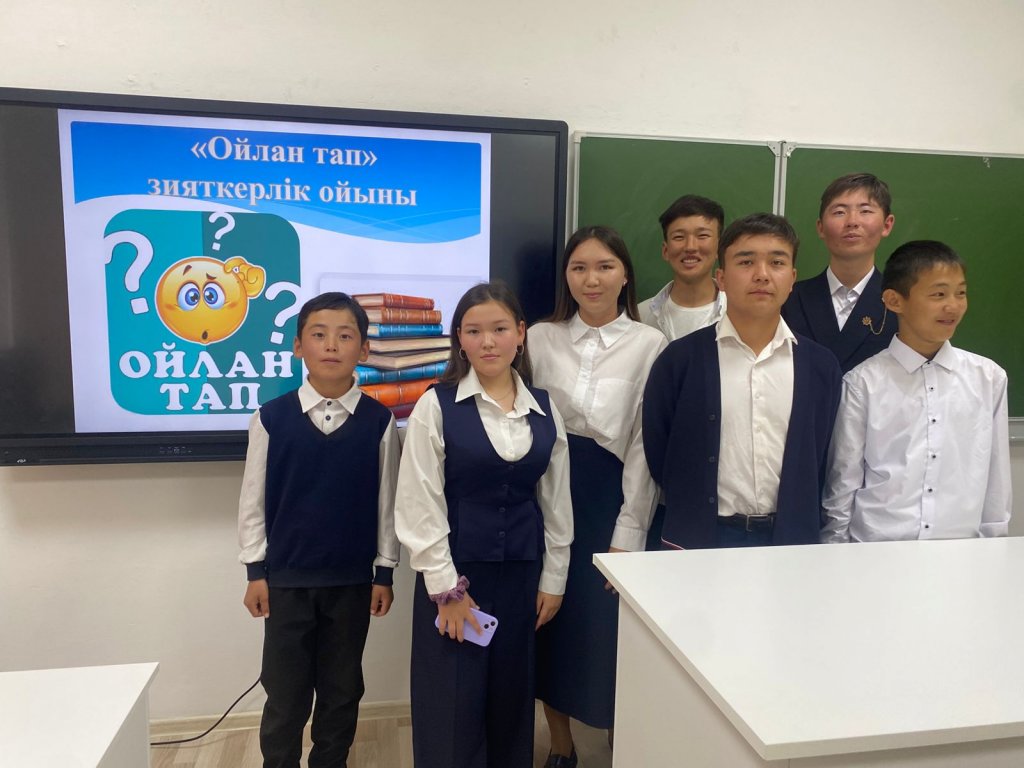 Тілдер онкүндігі аясында Қазақ тілі мен әдебиеті пәнінің мұғалімі Жуманова Риза Сагнаевна 5–11 сынып оқушыларына арнап “Ойлан тап!” зияткерлік ойын ұйымдастырды